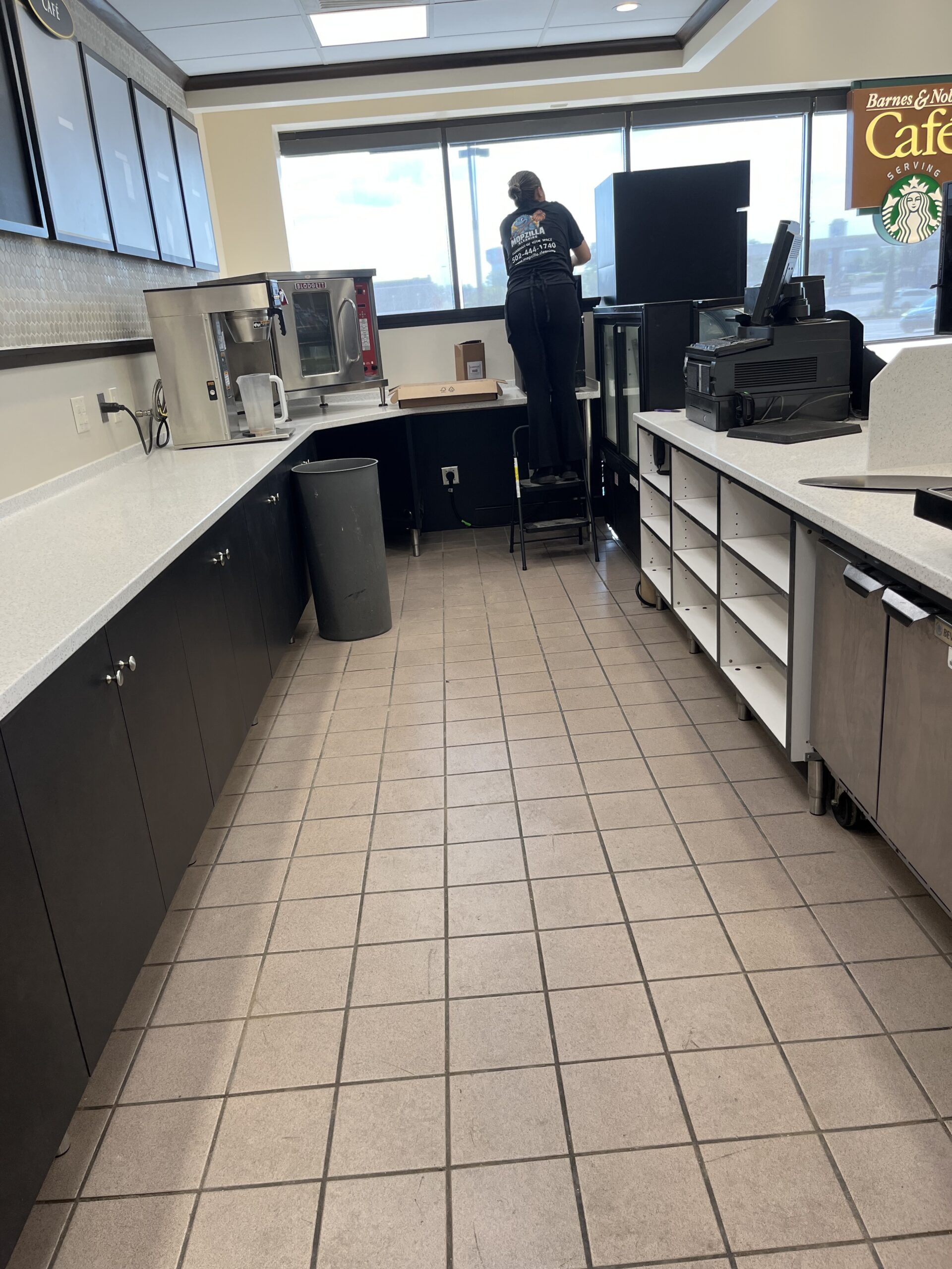 Thank you for taking my call today. What we are looking for is 4 cleaners for around 4 hours on the 15th of August starting at 9am. We will be looking to have you wipe down all surfaces (countertops, cabinets, tables, chairs, appliances, walls and interior of windows) as well as good broom, mop, and floor scrub of the flooring. We only are looking at the Cafe seating and service areas. We do not go into the prep room in the back. Please provide a quote when you are able to. This location is at Florence Square S.C, 7663 Mall Rd, Florence, KY 41042 if you would like to see the space. I look forward to hearing from you.